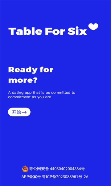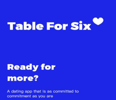 Table for six风靡全球,是时下最潮最In的新型交友方式,告别单独约会的紧张与尴尬,不再担心约会无话可说而冷场,集休闲社交与一体,节约大家的时间成本。6人配对,下一秒就能在约会项目中找到共同兴趣爱好的人一起去打球、登山、party,更有新颖有趣的聊天室配对游戏。