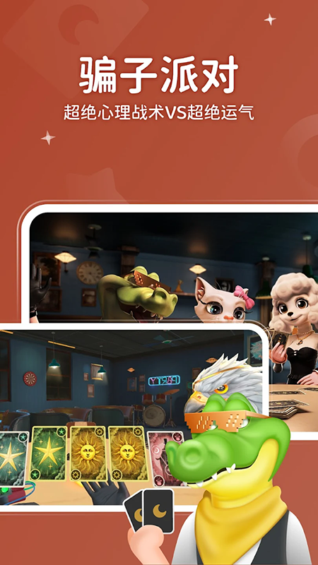 1、包含“狼人杀”(经典逻辑对战,区分好人、狼人阵营,通过发言投票淘汰对手)、“太空狼人杀”(全新社交推理玩法,在太空场景中排查内鬼)、“谁是卧底”(综艺同款玩法,通过描述词语找出卧底,适合多人互动);