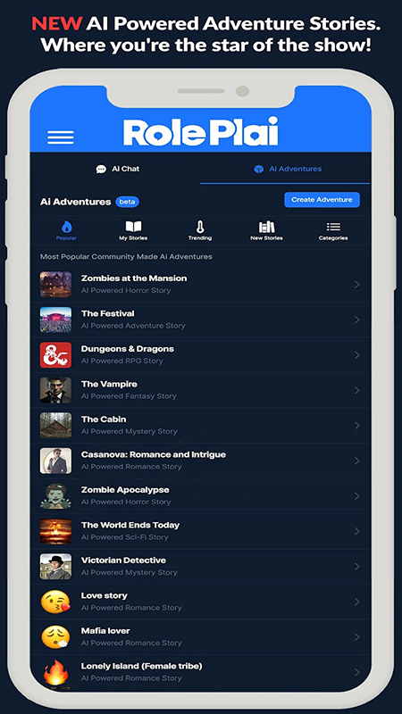 3、将“AI聊天”与“互动小说”结合,用户决策直接影响剧情走向。