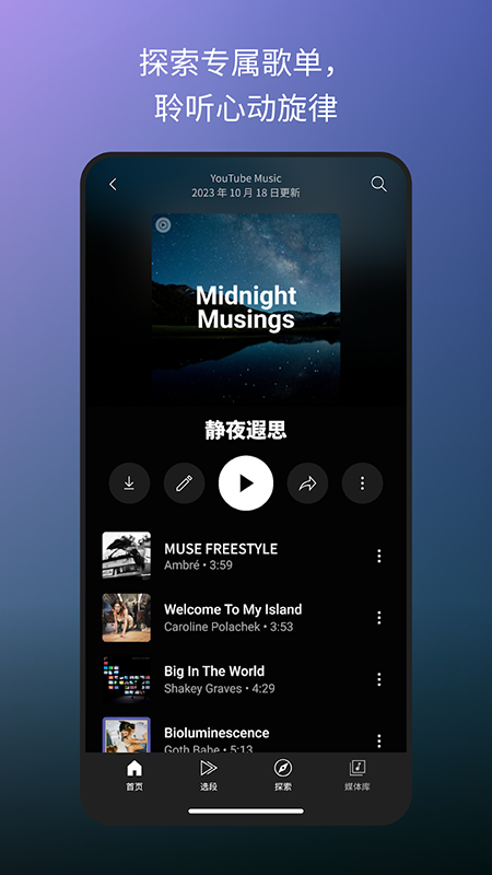 5、支持创建个人播放列表,系统会基于现有曲目推荐相似歌曲;也可与其他用户协作编辑歌单,共同打造“好友专属歌单”;