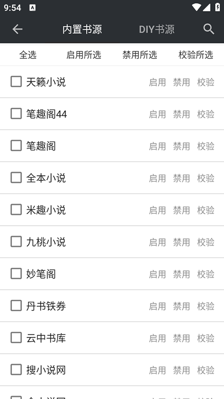 7、书源管理:显示每本书的对应书源,用户可清晰了解资源来源,同时支持“禁用书源”操作,自主筛选可用资源。