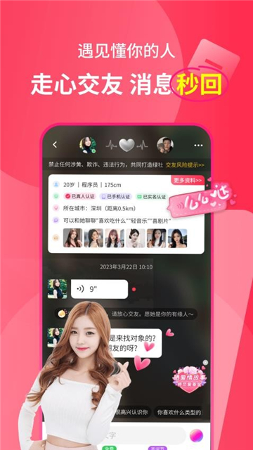 还能随时查看聊天记录,重温美好瞬间。即使是初次使用交友软件的新手,也能迅速熟悉,轻松享受交友乐趣。