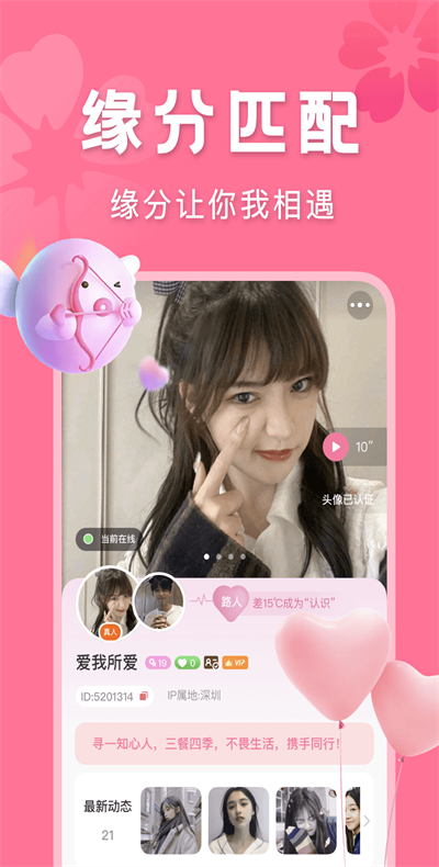 用户们可以通过缘分匹配结识让自己心动的那个ta