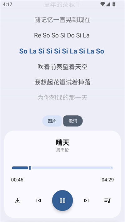 轻量互动与便捷体验:内置歌词实时滚动、逐句跟唱功能,支持一键分享歌词海报;离线缓存无需会员,低流量模式适配多种网络环境,同时操作界面简洁无广告,让用户专注享受纯粹的音乐时光。