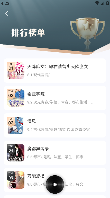 推荐精准高效:结合用户听书偏好和历史记录,提供相似清单、个性化推荐,搭配实时更新的排行榜单,让用户无需花费大量时间筛选,就能快速找到优质内容,提升资源获取效率。