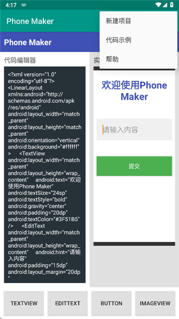 1、Phone Maker代码编辑器编程无需注册,打开就是输入代码内容的界面。