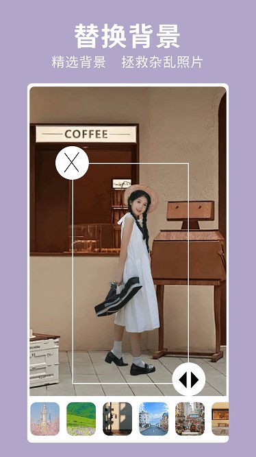 2、提供替换背景与精选背景功能,可一键替换杂乱背景,拯救构图或环境不佳的照片;
