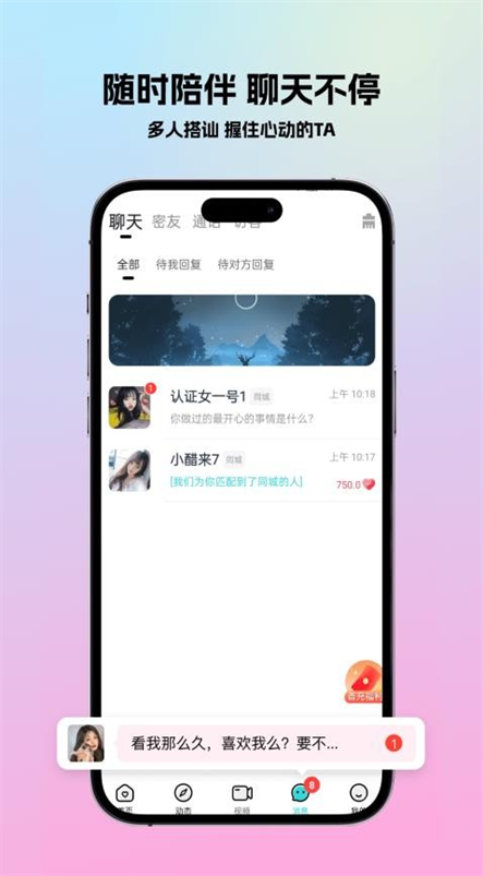 精准的地域与兴趣匹配:结合实时地理位置推荐附近用户,方便后续线下连接;同时依据用户资料智能匹配志趣相投的对象,减少无效社交,提升心动概率。