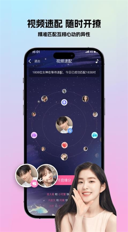 视频速配功能:支持用户一键发起视频聊天匹配,即时连接可面对面交流的有缘人,通过实时互动快速拉近距离,讨论共同话题,提升交友直观性。