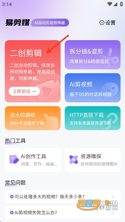 打开app,用户们可以点击“二创剪辑”,开启自己的视频剪辑之旅