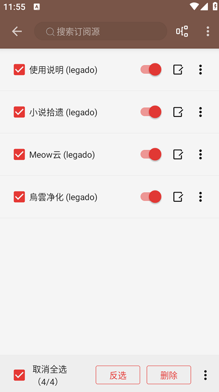 软件读取书源后,会显示可导入的书源列表,可全选或按需勾选目标书源,点击“确认”完成导入,导入后可在书源管理中启用或删除不需要的书源。