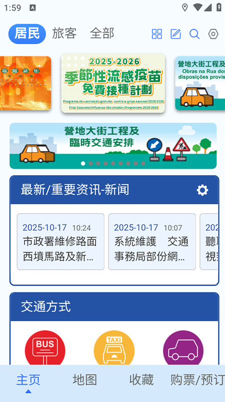 境外APP澳门出行是由澳门交通事务局开发运营的官方一站式出行信息平台,覆盖海陆空多类交通方式,巴士、的士、自驾、步行、飞机、船班、轻轨等交通方式,同时整合了旅游服务资源,包含酒店、美食、景点等旅游资讯,为澳门居民与游客提供便捷的出行规划与服务。