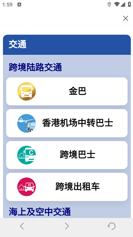 2、整合飞机航班、船班、机场中转巴士信息,支持购票/预订,满足海陆空出行需求;