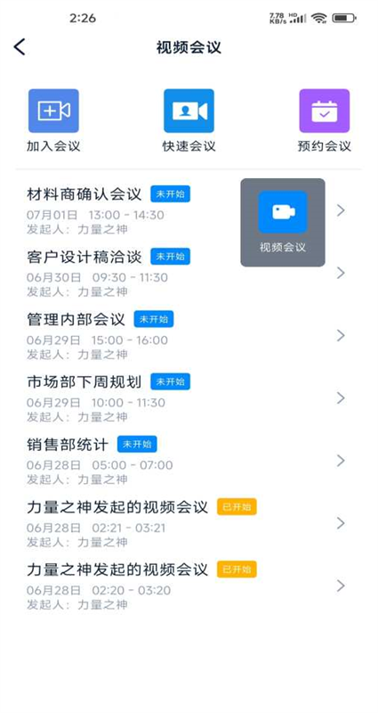 全流程会议管理功能:支持快速发起即时会议与预约会议,可设置会议时间、参会成员及权限(如静音、禁言),会议中能共享屏幕、开启视频,还能收藏重要会议并查看历史会议记录,满足远程协作需求。