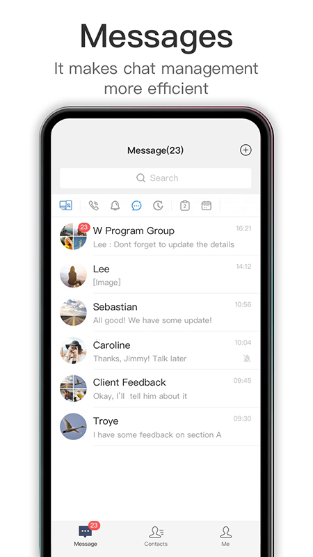 1、采用线程讨论机制,让工作话题的交流更有条理,便于后续追溯和查看。