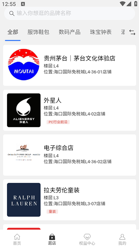7、提供1200+合作品牌介绍,实时更新线下免税店地址、营业时间及周边餐饮娱乐信息。
