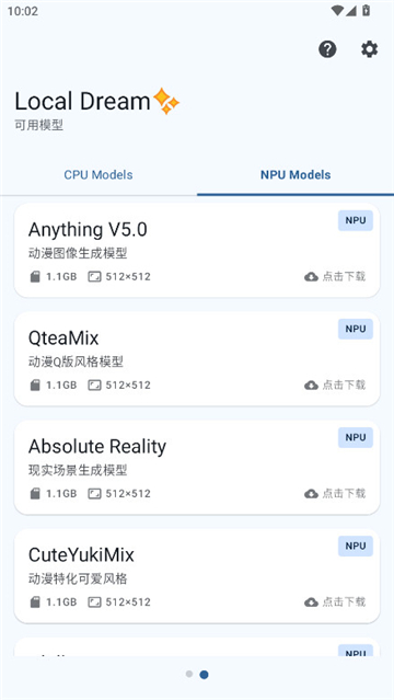 2.第一次打开软件不能直接用,得先下载模型文件,大家喜欢哪个就直接点击哪个模型右下角的点击下载即可。