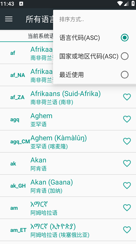 在侧边栏中选择“常用列表”或“所有语言”,进入对应的语言列表界面。