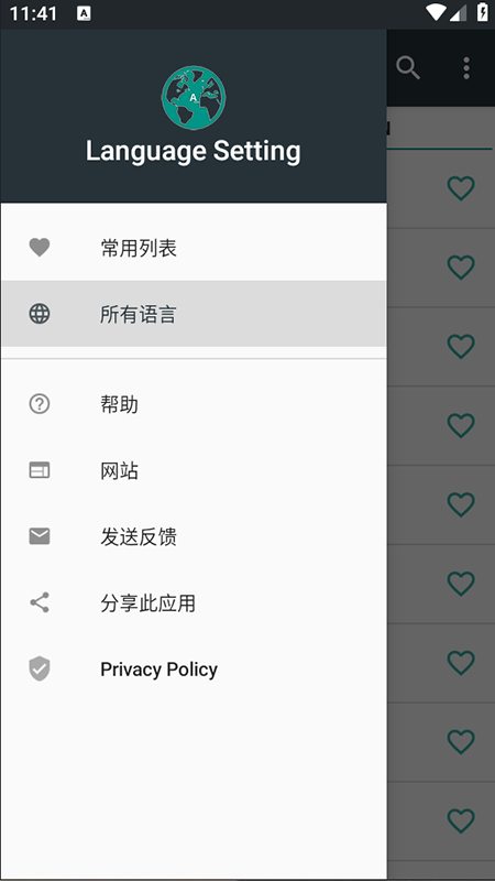 在本站内下载安装语言设置APP后,打开软件进入主页,界面会显示当前系统支持的所有语言。