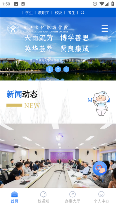 丽江旅院APP是专为丽江文化旅游学院量身定制的官方移动端。它汇聚了校园全方位服务及资讯信息,为师生打造便捷、高效的移动校园生活体验。借助这款应用,师生能够第一时间掌握校园内的最新资讯动态。