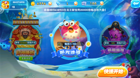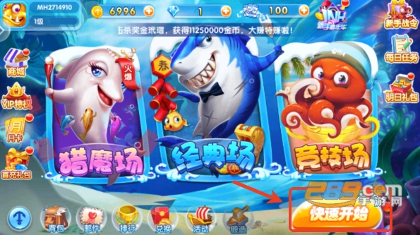 进入游戏,玩家直接点击“开始开始”,开启自己的自由捕鱼之旅