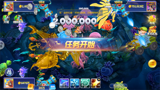上百种珍稀鱼类跃动海底,搭配4K级动态场景与全屏炫光特效,每一次开炮都触发粒子爆裂、光影交织的视觉奇观,带你畅游如梦似幻的海底世界!