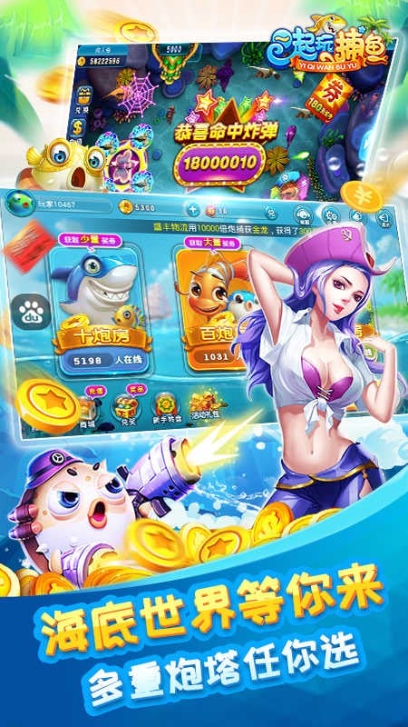 3、支持多人实时竞技对战,玩家可同屏捕鱼一决高低,让捕鱼乐趣在掌上延伸,增强玩家之间的互动性。