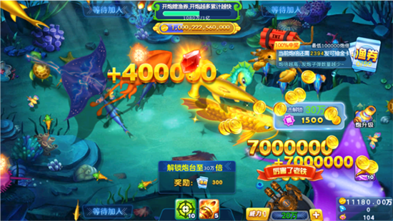 2、炮台支持“千倍BOSS、万倍炮台”解锁,高倍率炮台可实现“一炮秒鱼”“一炮爆机”,最高可赢20亿金币。