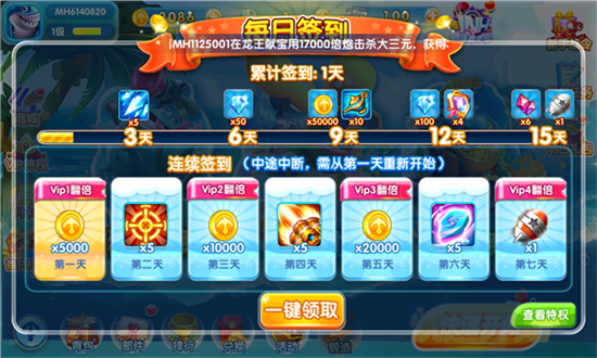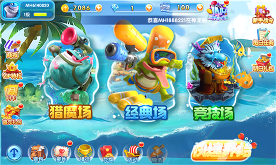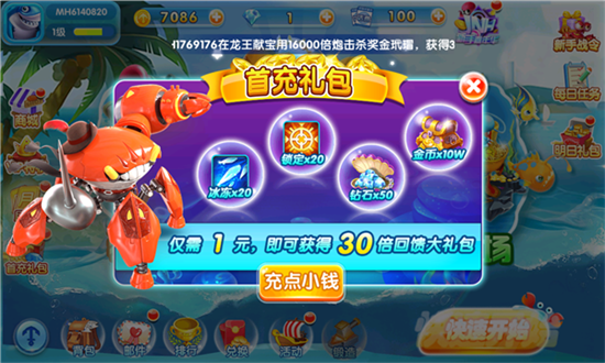 新手礼包登录即领:玩家登录金手指捕鱼并进入游戏后,即可直接领取为新用户准备的新手礼包,轻松开启捕鱼体验。