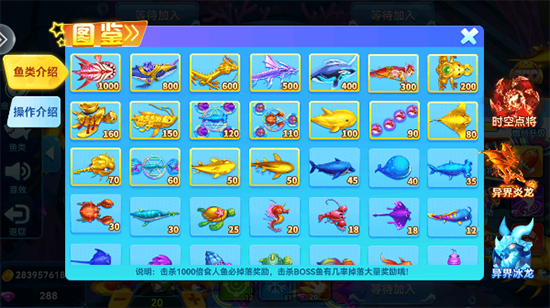 查看图鉴:在游戏主界面点击右上角的“菜单”按钮,在菜单中选择“图鉴”功能,进入图鉴页面,在此可查看所有鱼类及游戏物品的详细信息,包括分值、特性与出现场景,助力高效捕鱼。