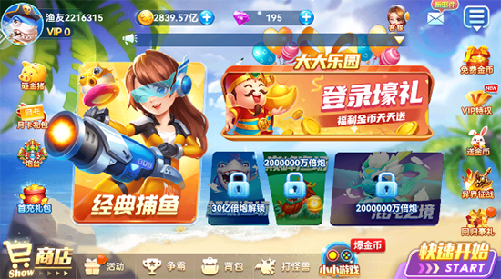 3、作为多人在线网游,玩家可参与捕鱼争霸等竞技模式,界面还会显示其他玩家动态,增强社交属性。