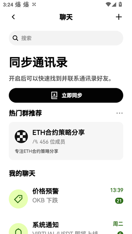 支持数百种主流和热门币种的买卖,交易界面直观,深度充足。