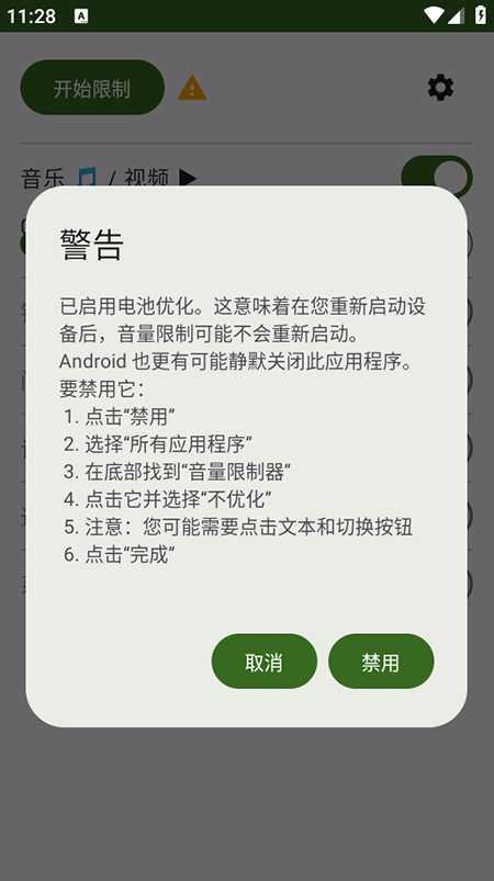 4、调整音量限制范围时,系统会播放预览声音并给出噪音警告,用户可在设置中禁用该功能。