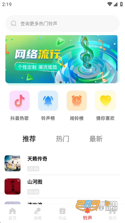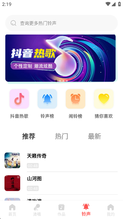 铃声资源内容:汇聚抖音热歌、铃声榜、闹铃榜等分类铃声,提供个性化推荐,用户可直接挑选喜欢的音乐设置为手机铃声或闹钟。