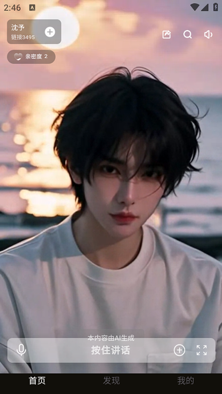 1、支持文本、视频、语音三种聊天方式,用户可按住讲话发起语音对话,也能通过文字或视频形式与AI角色沟通,互动形式丰富多样。