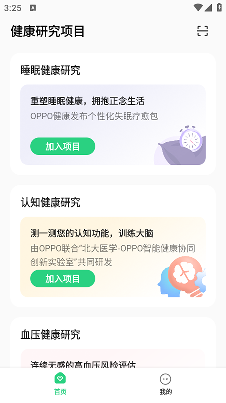 OPPO健康研究是一款医疗级健康研究工具,是由OPPO联合北京协和医院、中国医学科学院打造,适配OPPOWatch系列、手环及部分第三方设备,通过高精度传感器采集心率变异性(HRV)、血氧、体动等生物信号,可生成符合临床标准的健康报告。