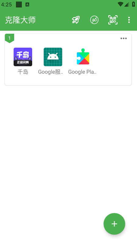 在本站内下载安装并打开克隆大师app,点击软件右下角的“+”号,选择需要克隆的应用。
