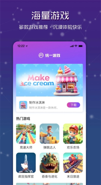 统一游戏盒子app官方正版手机版v1.0.10 安卓版统一游戏盒子正版下载安装最新版2023是一款非常好用的游戏盒子软件,汇聚了海量丰富的游戏资源,各种类型的应有尽有,而且随时下载随时就能玩,游戏资讯和动态都
