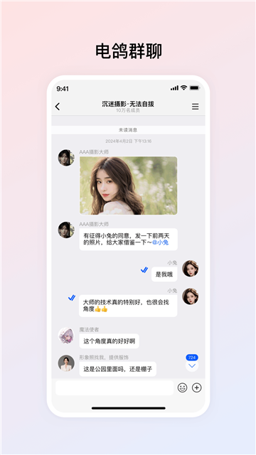 电鸽app免费下载2025最新版是一款专注于大群通讯的轻量化社交聊天应用,支持一对一私聊、超大群组(最高5000人)和自定义话题频道,适用于生活兴趣交流、商业营销及社群管理等多种场景,其核心特点是简约无广告、操作便捷且支持云端消息存储。