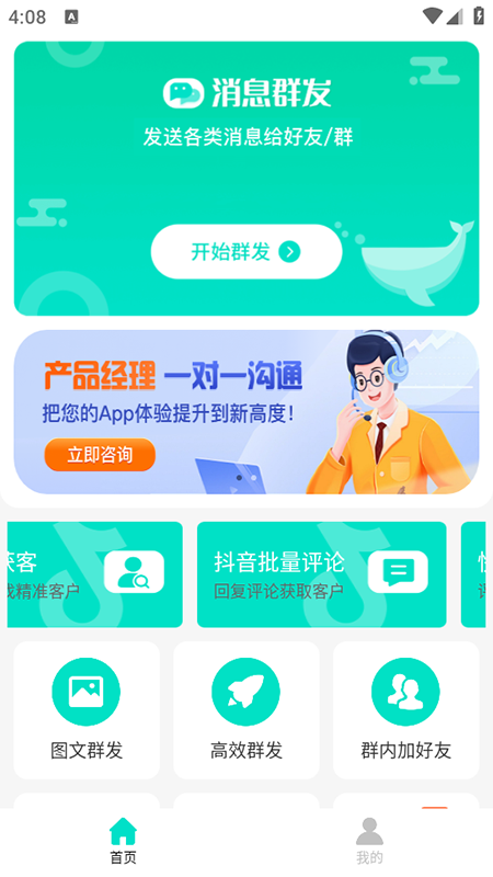 消息群发助手是一款专业拓客工具,有微信消息群发功能,可以消息、图片、链接等群发,还提供清粉、水印添加等辅助功能,是微商推广商品、用户群发祝福信息的工具,提供高效、便捷的信息扩散服务,软件为免费使用,无广告弹窗。