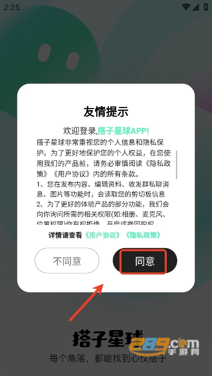 用户们可以先点击“同意”,同意软件协议政策