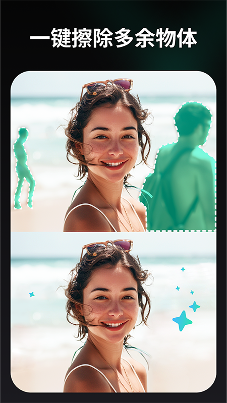 3、能轻松擦除图片中的水印、文字、时间戳等多余对象,与背景自然融合。