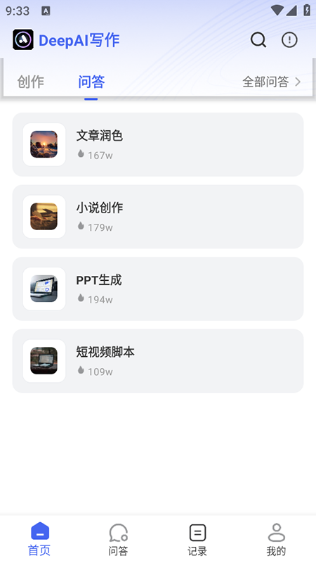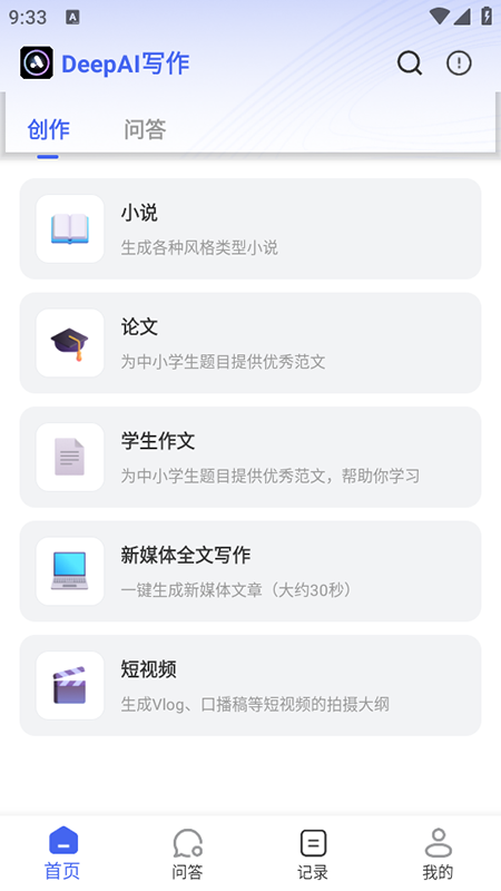 下载并打开DeepAI写作APP,注册登录后进入首页,选择AI文案创作。