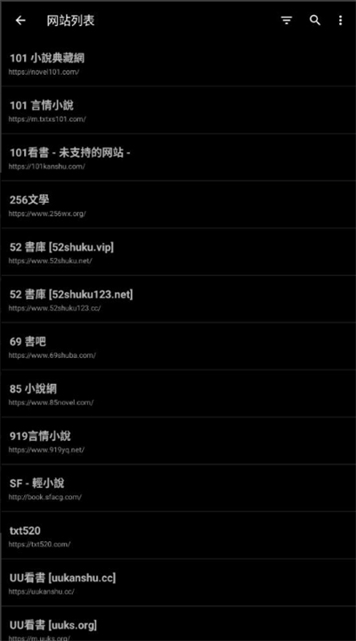 4、软件自带的也有小说网址,点击添加页面最上面的加号,会自动载入