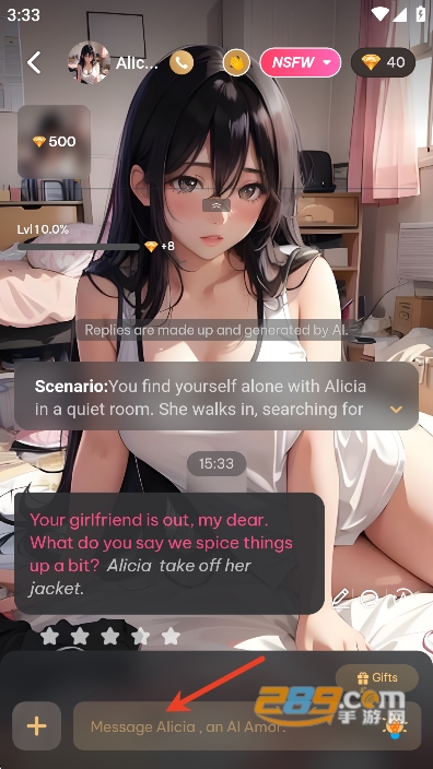 然后用户们可以与AI角色聊天互动,沉浸式体验虚拟恋爱的乐趣