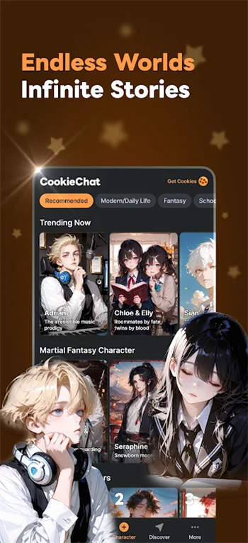 角色探索与选择功能:提供清晰的角色分类导航,用户可按题材快速筛选心仪角色,也能直接浏览每日上新推荐;每个角色都附有简短介绍与互动预览,帮助用户快速判断是否符合喜好,降低选择成本。