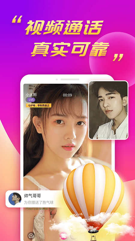 1、支持1对1高清视频通话与多人嗨聊大厅连麦,内置智能音画调校功能,还原面对面交流真实感;