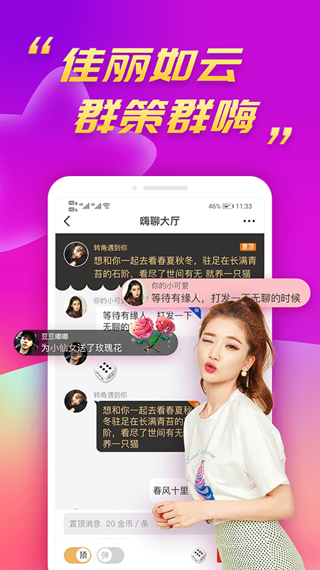4、覆盖文字、语音、视频、弹幕互动,支持发送图片、短视频动态;