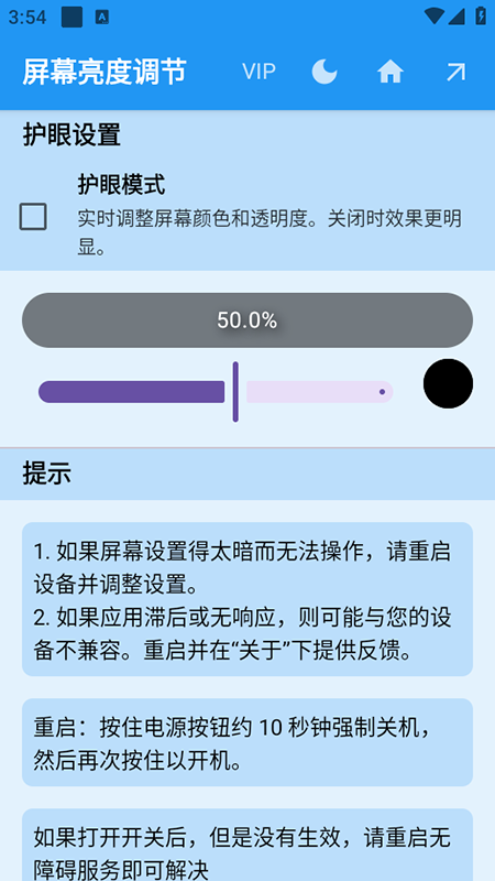 3、突破手机系统默认的亮度下限,支持超低亮度调节。