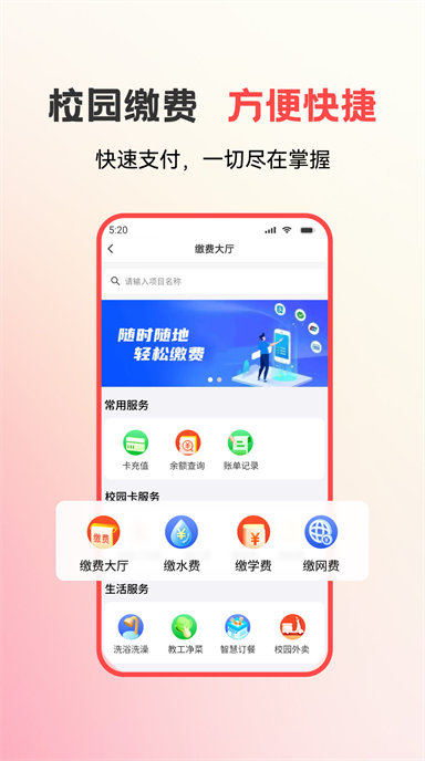 校园专属的精准适配:功能与内容深度贴合校园场景,缴费项目、教务信息、服务范围均针对校园定制,例如学费缴纳自动关联个人学籍信息,校园卡功能与校内消费场景无缝对接,区别于通用生活服务APP,适配性更强。